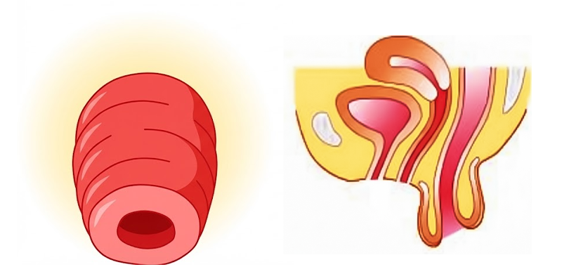 直腸脱とは、肛門から直腸壁全層がめくれてお尻から脱出するものです。いわゆるお尻から腸が飛び出てしまう病気で、ほとんどの患者さんはご高齢の女性の方ですが、高齢の男性や若い方でも直腸脱になる方もいます。ひどくなると10~20cm以上も脱出することもあります。